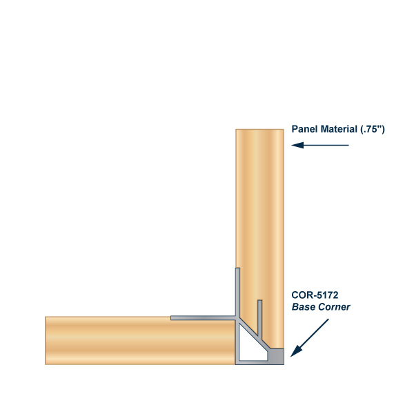 Eagle Aluminum’s Base Corner Trims for casework are made from 6560-T5 aluminum an alloy known for its good strength and corrosion resistance. Built to accommodate .75″ thick material, these casework base corners are stocked in 12′ (144″) lengths in Clear Satin Anodized Finish. Eagle Aluminum’s casework base corner trims provide a clean, modern aesthetic and contribute to functional, durable, and successful commercial environments.